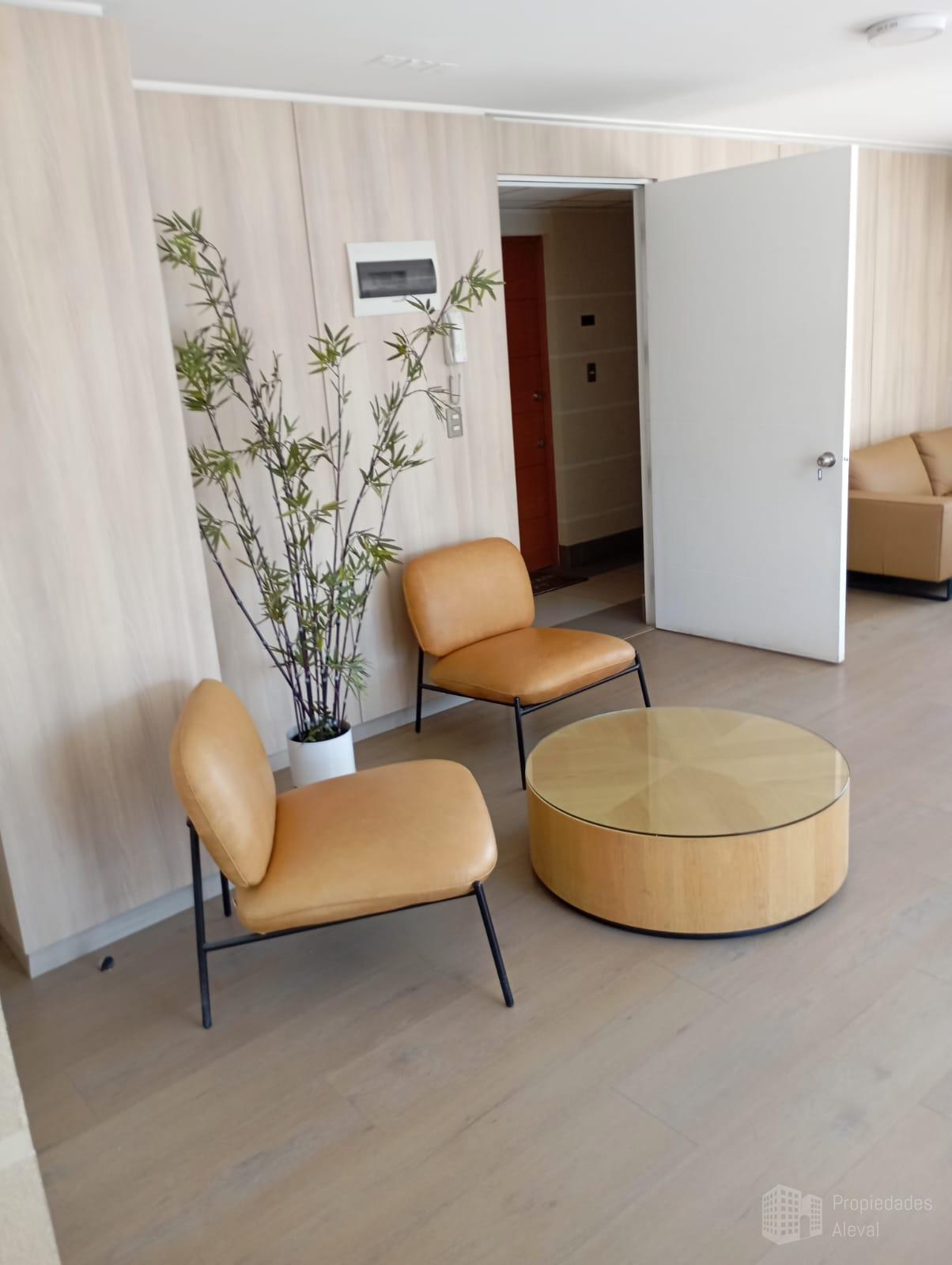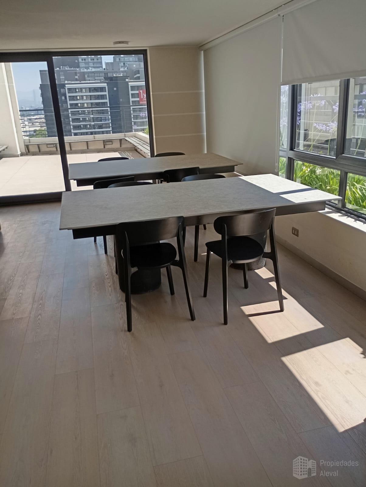 Sala de estar-comedor, cocina amoblada y equipada con mueble base de Durasein, encimera vitroceramica, horno electrico, extractor de aire, horno microondas. Instalación para lavadora. Piso vinilico SPC en todo el depto, porcelanato en baño. Walking closet en dormitorio. Terraza frente a la sala de estar. Barras de cortinas. Botón y trimbre de pánico conectado a conserjería.